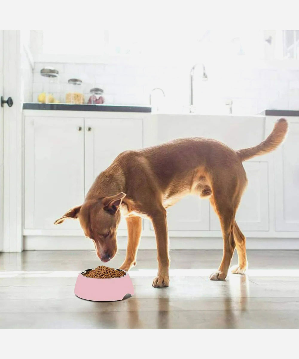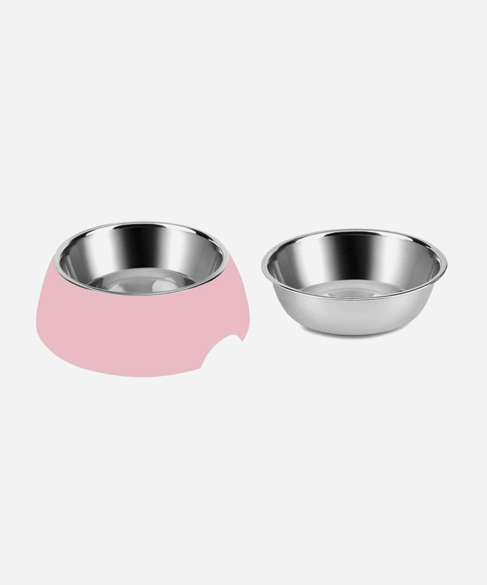 The pet bowl is combined with 1 stainless steel bowl and 1 bigger colored outer Melamine pot – one for food, one for water. The 2 parts can be used separately or together as 1 thick bowl.